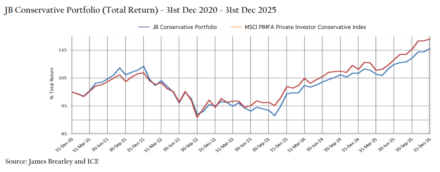 The portfolio is benchmarked against the MSCI PIMFA Private Investor Conservative Index.