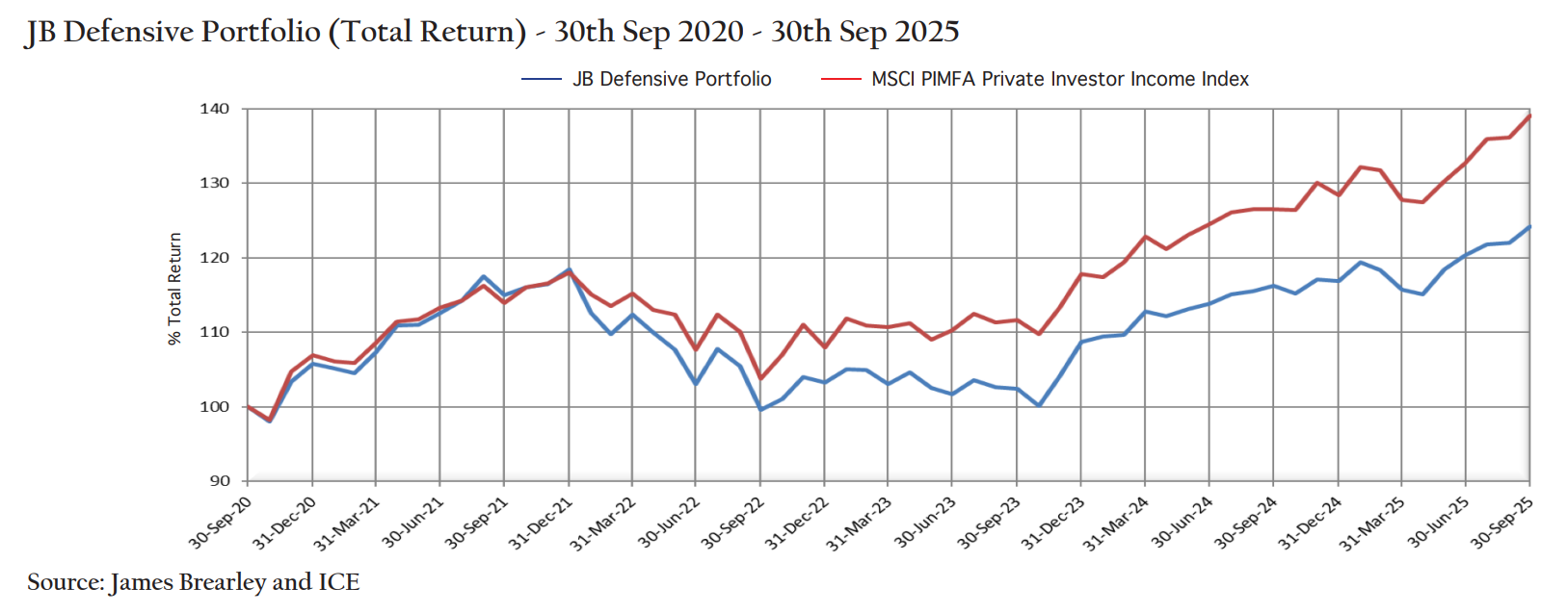 The portfolio is benchmarked against the MSCI PIMFA Private Investor Income Index