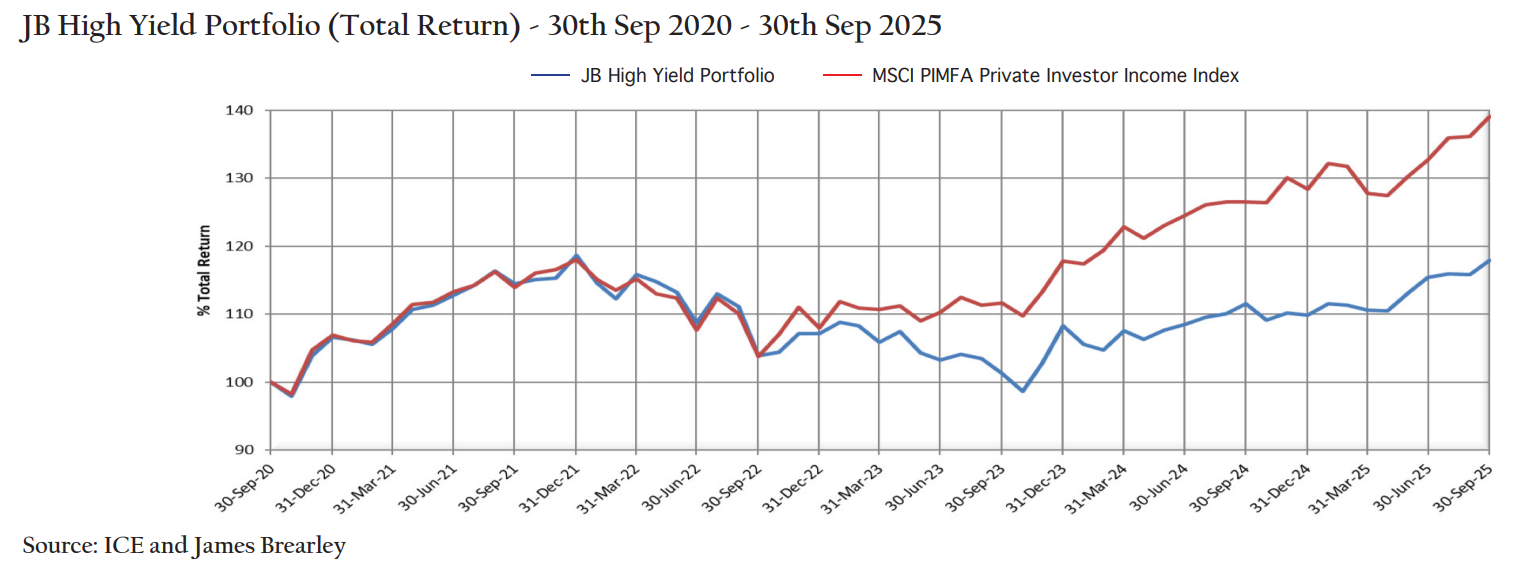 Source: FE Analytics and ICE. All performance figures shown are Total Return. As at 30th Sept 2025.